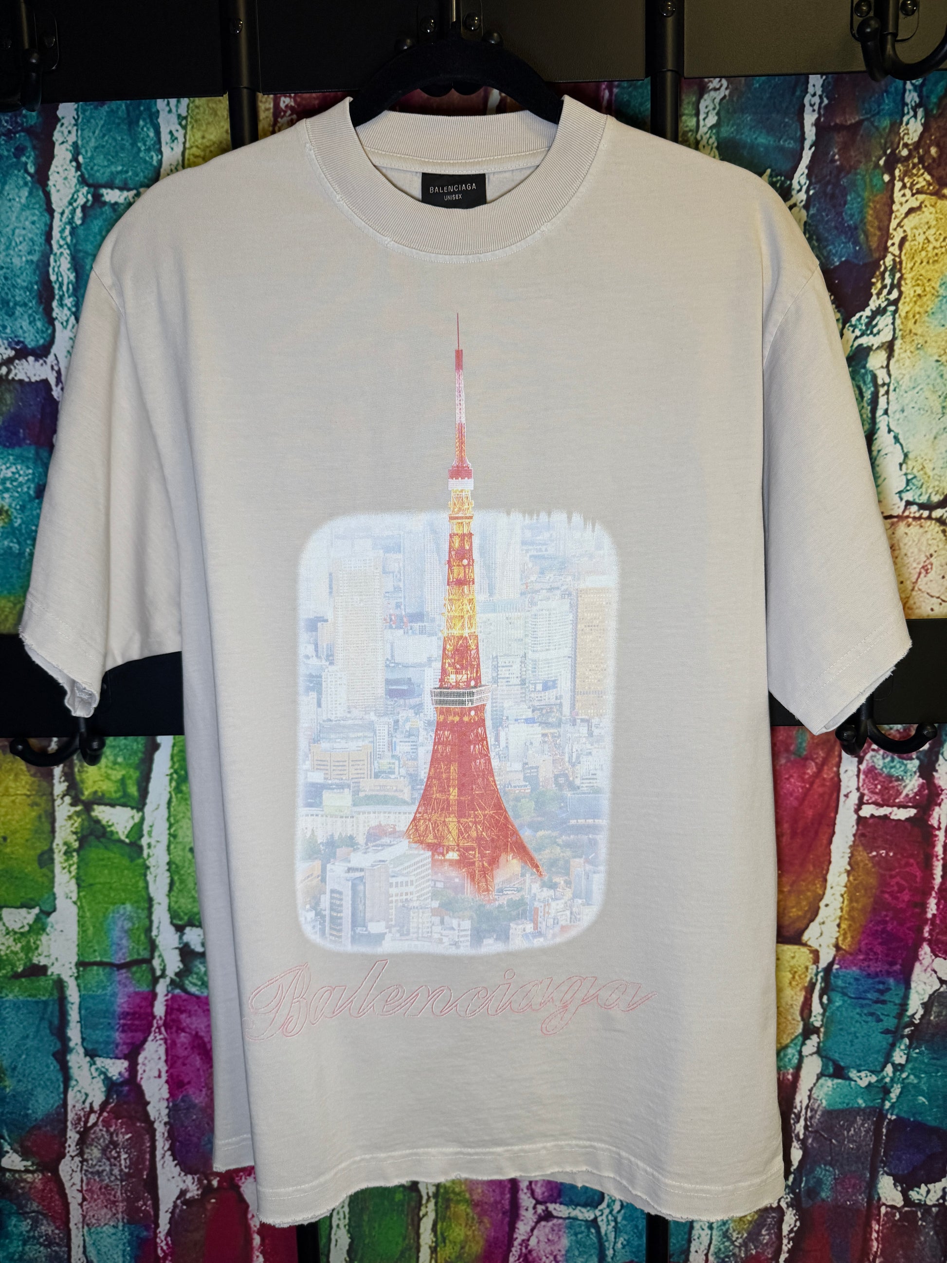 Elevate your style with our Balenciaga t-shirt in a creamy color. Made from high quality cotton, this luxurious shirt exudes sophistication and comfort. Elevate your wardrobe with this must-have piece!