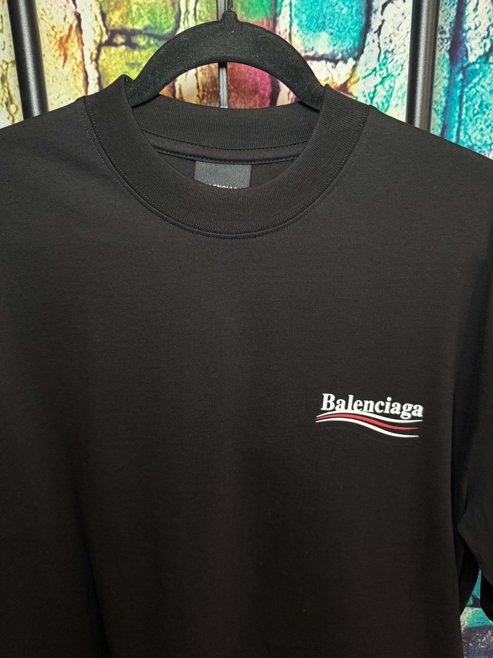 Elevate your wardrobe with the ultimate luxury tee, the Balenciaga Tshirt. This classic oversized tee features the iconic Balenciaga campaign logo, making it effortlessly stylish. Perfect for any occasion, this tee is a must-have for fashion lovers. Don't just wear a tshirt, make a statement with Balenciaga.