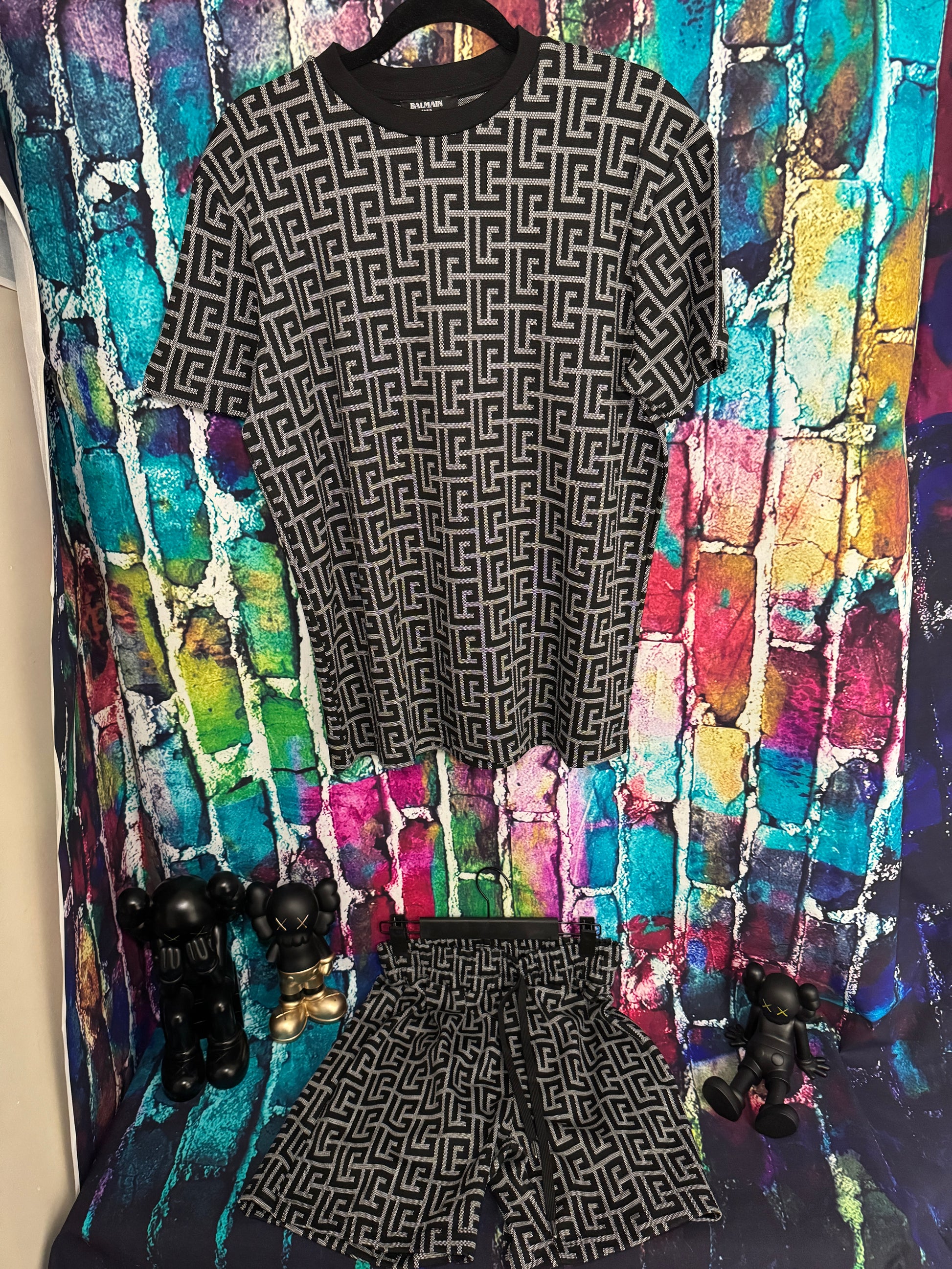 Enjoy the ultimate luxury and comfort during your summer getaway with the Balmain summer set. Made with the finest materials, this set includes a stylish Tshirt and shorts perfect for lounging by the pool or strolling on the beach. Elevate your vacation style with this must-have set.