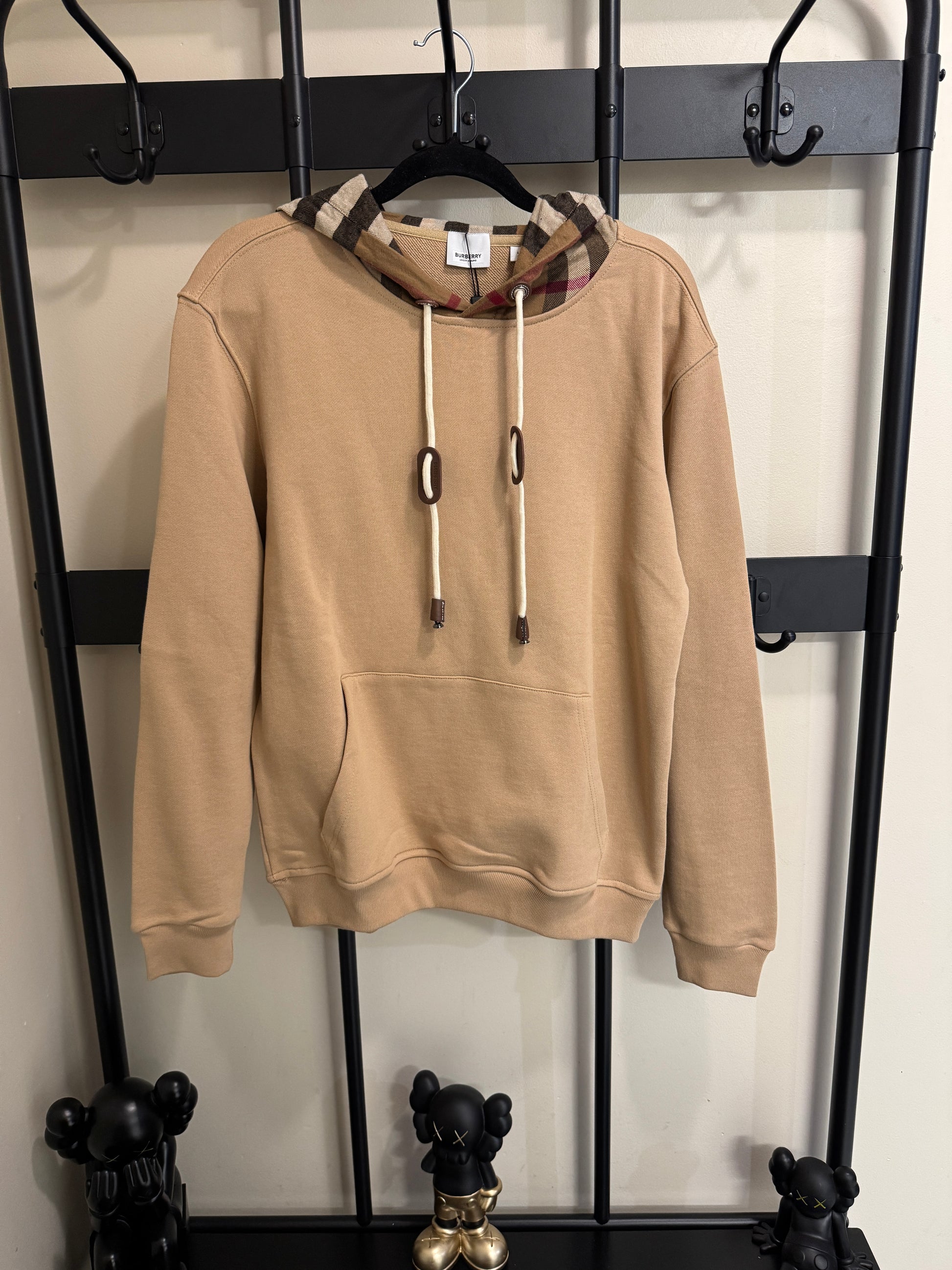 Stay stylish and cozy with the Burberry check hoodie! Featuring the iconic check design on the hood, this classic hoodie is perfect for adding a touch of luxury to your everyday wardrobe. Don't miss out on this must-have piece! (Pun intended, of course.)