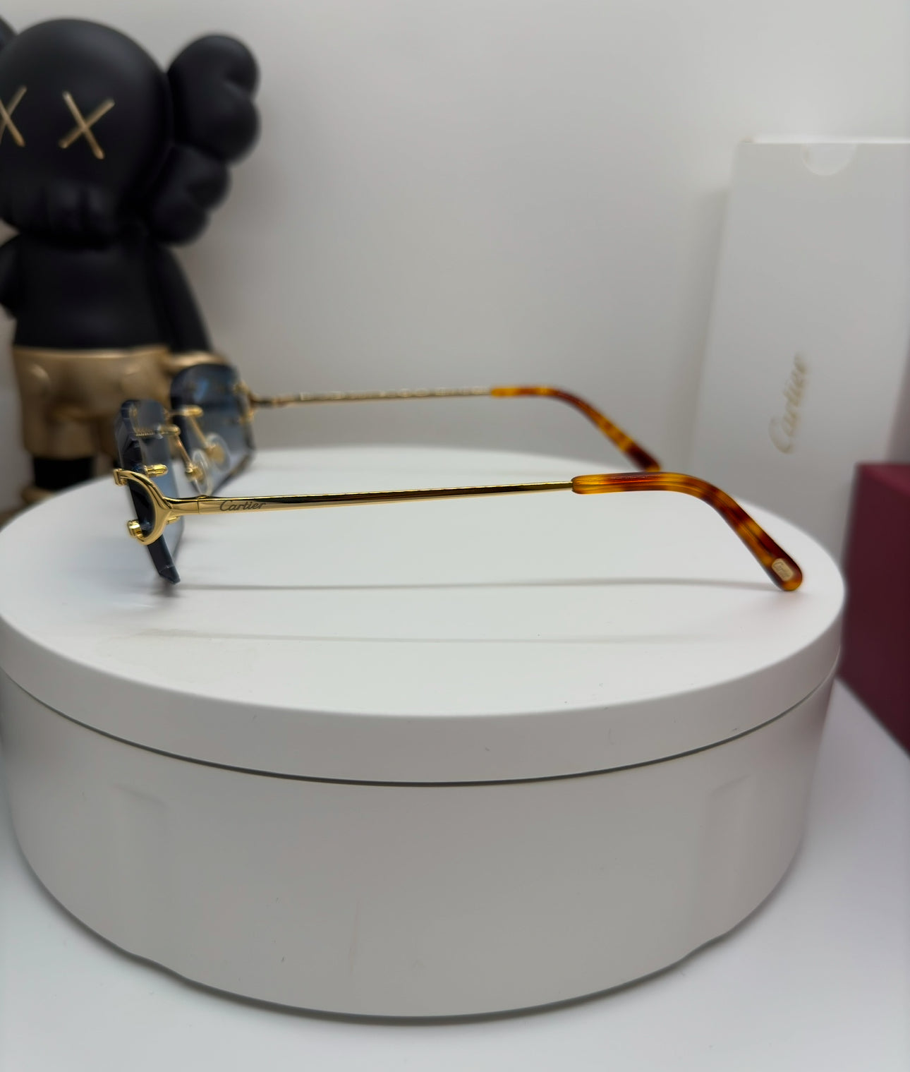 Introducing the sleek and stylish Cartier big c glasses. With a rimless design and jagged edges, these glasses are a popular choice among fashion-forward individuals. these glasses provide both style and quality. Upgrade your look with these iconic glasses.