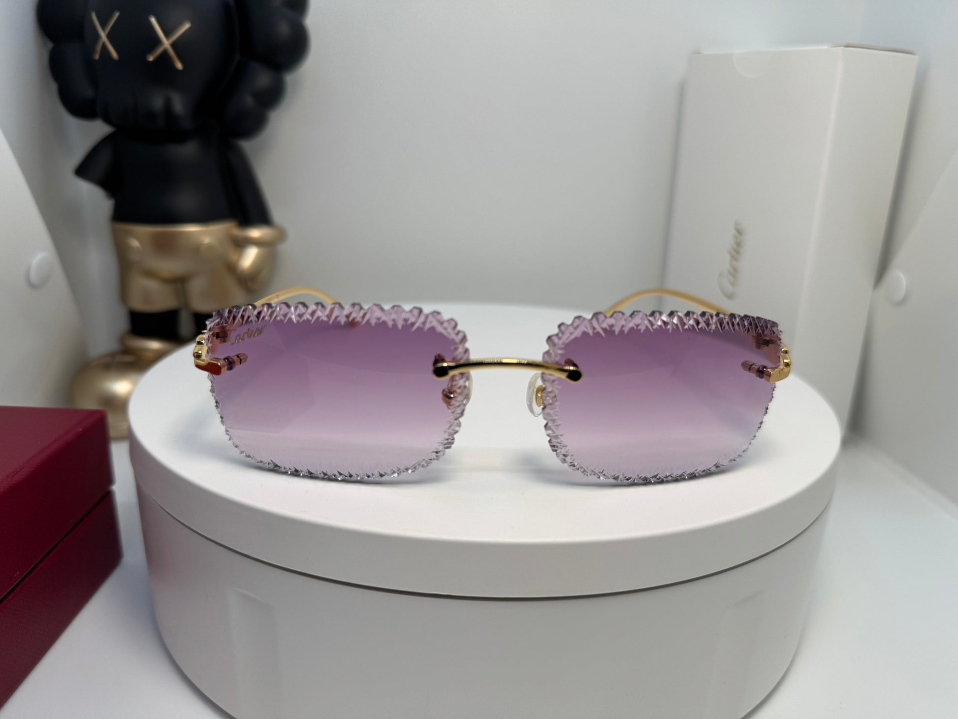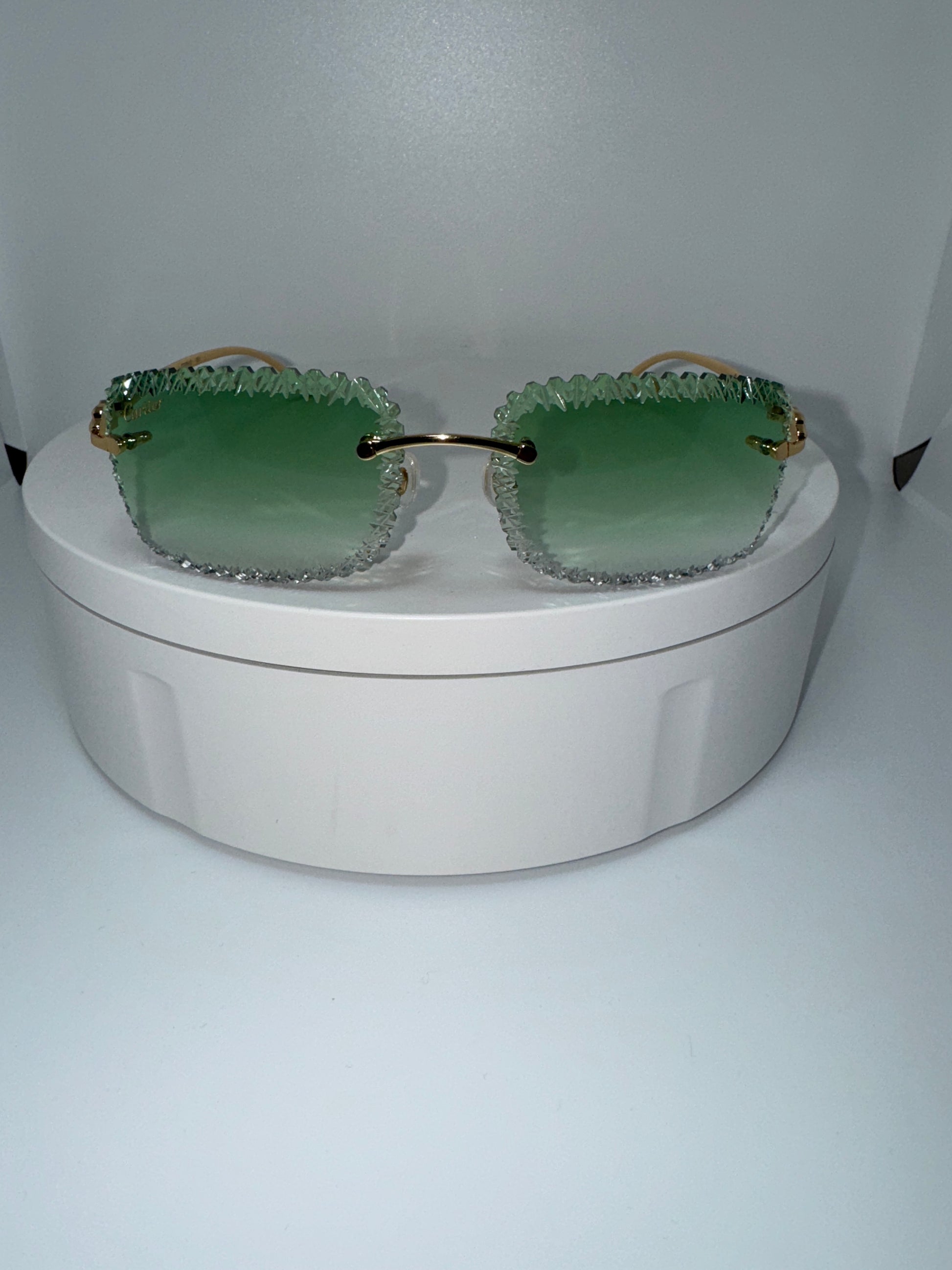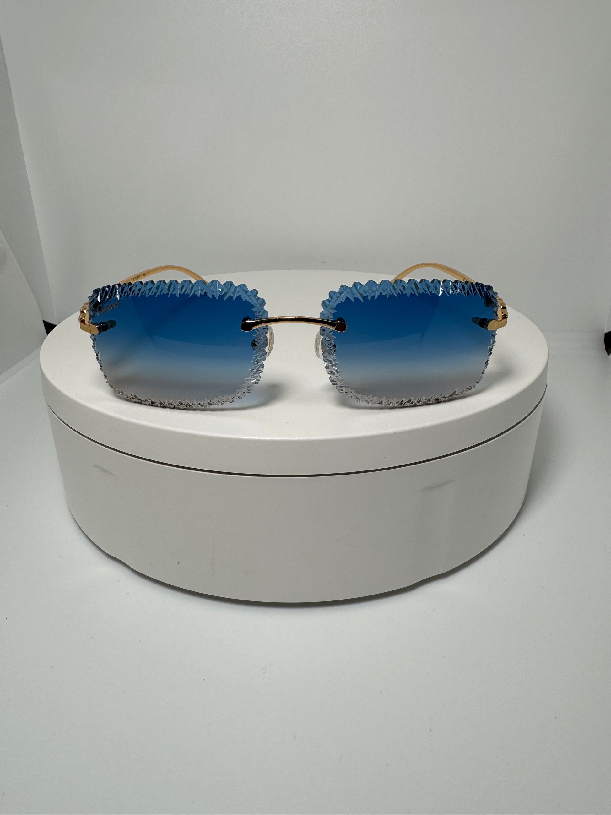 Luxury cartier rimless glasses extremely jagged edges Experience luxury and style with Cartier Thunder Glasses. These rimless glasses feature extremely jagged edges, making them a unique and stylish choice. Elevate your look and stand out from the crowd with Cartier's high-end design and craftsmanship. Perfect for those who appreciate the finer things in life.