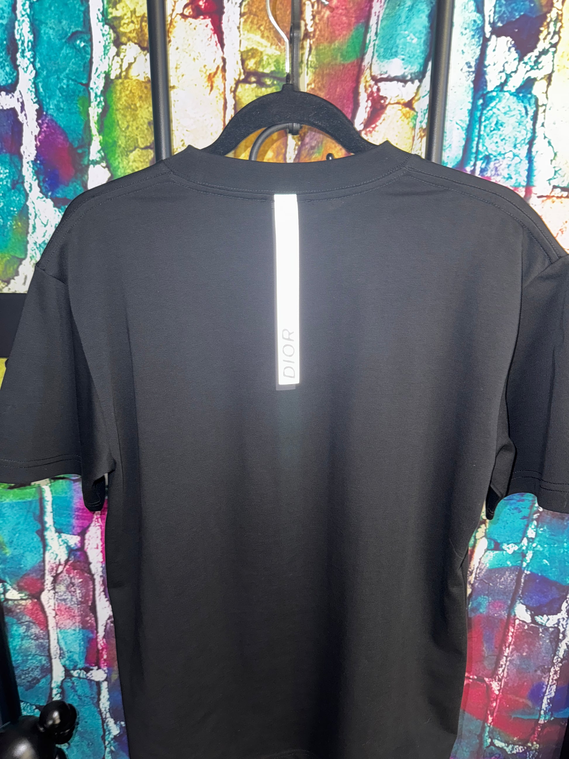 Elevate your wardrobe with the Christian Dior T-shirt featuring a reflective logo. Experience the luxury of Dior, while standing out with the eye-catching reflective logo. Perfect for any fashion-forward individual looking to add a touch of high-end style to their wardrobe.