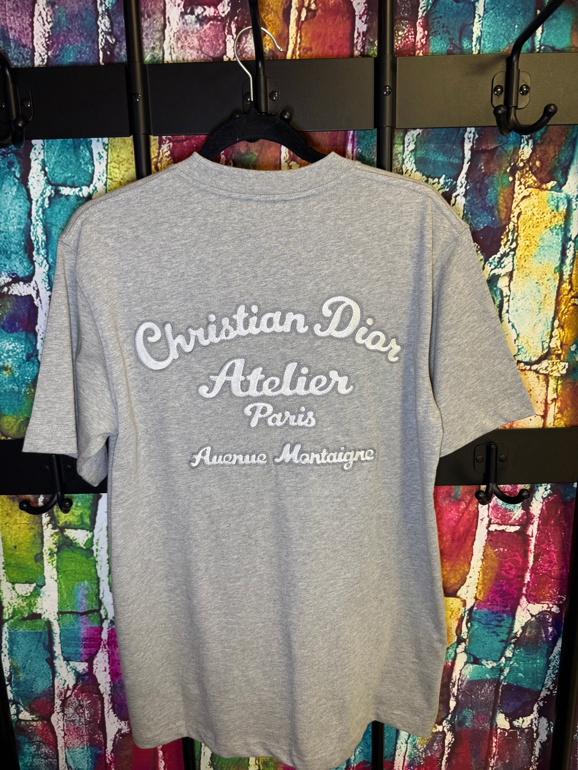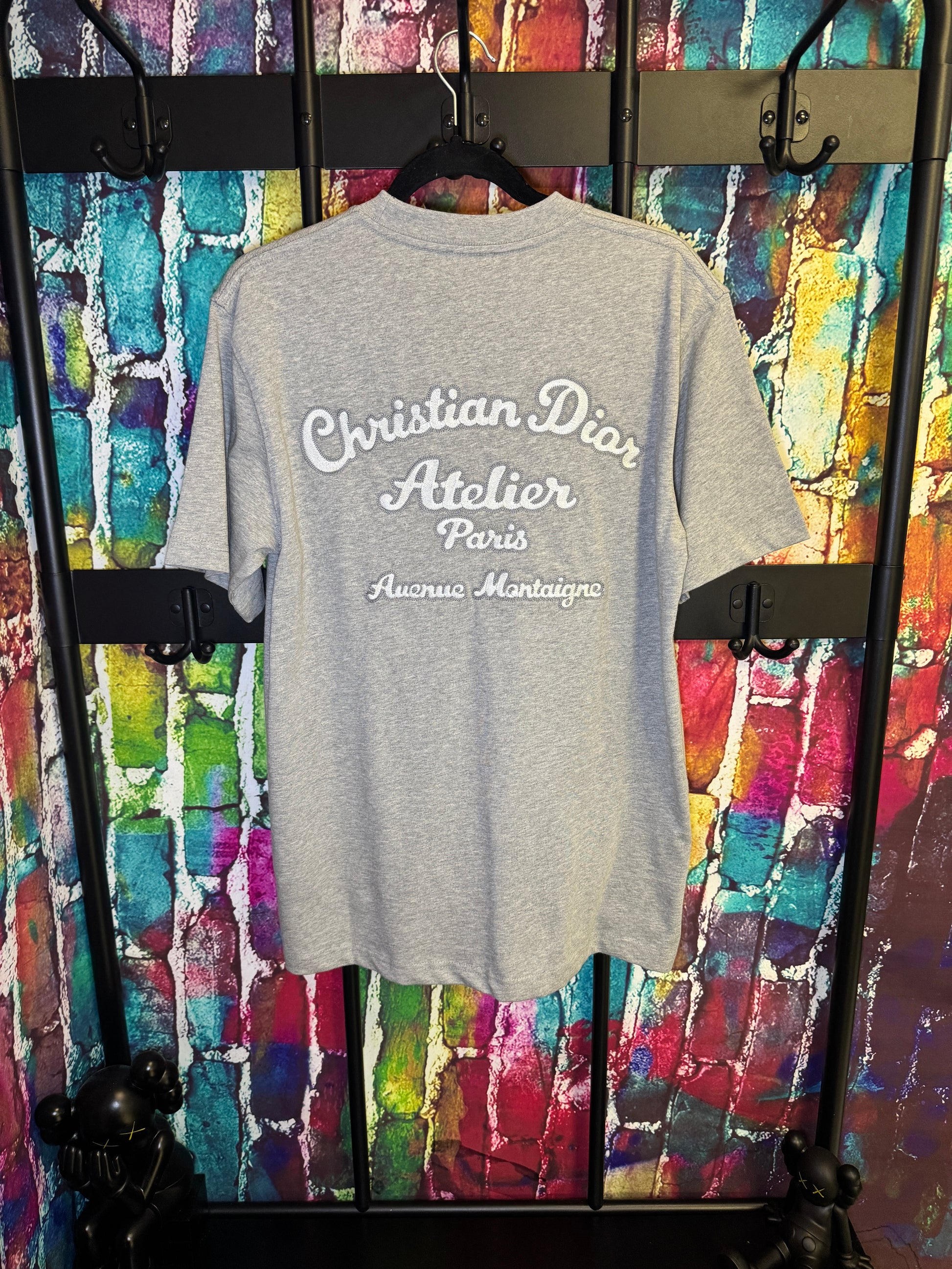 Introducing the Atelier Dior T-shirt! Made with high-quality materials, this luxury t-shirt showcases the iconic gray design of the Dior brand. Embrace style and comfort with this must-have piece.