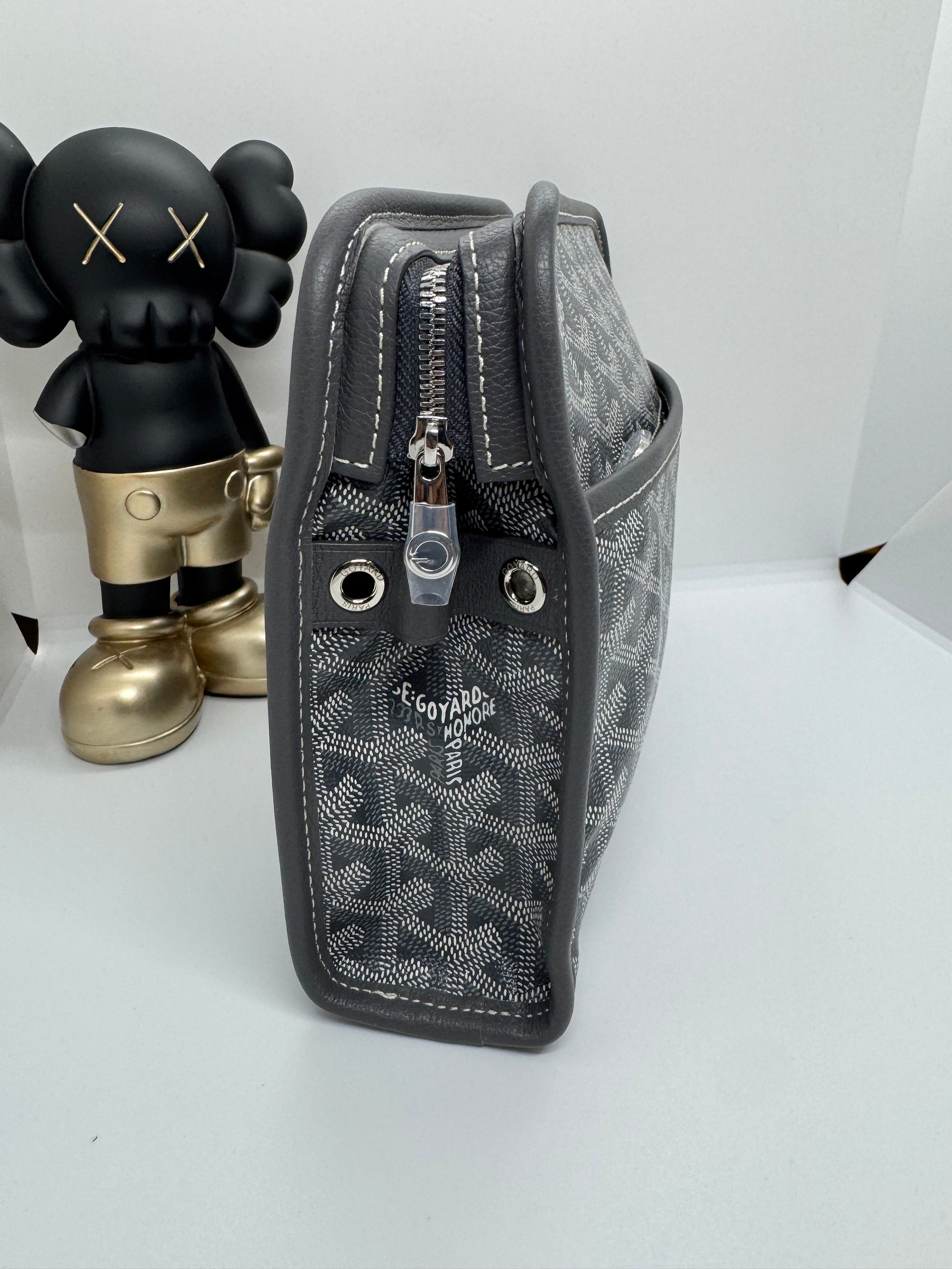 Experience convenience and style with the Jouvence MM Goyard Pouch. Its ideal shape keeps items vertical to prevent spills, while the water-resistant cotton lining makes for easy cleaning. The loop tab allows for versatile attachment options. Perfect for any on-the-go lifestyle!